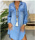 Long Sleeve Buckle Pocket Solid Color Denim Shirt Dress m300718