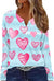Printed V-neck V-neck three-button long-sleeved T-shirt m300618
