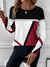Pullover round neck contrasting color splicing geometric printed top women's T-shirt m300874