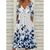 Printed V-neck button short sleeved dress with women's pockets and long skirt m300028