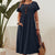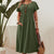 Solid Color round Neck Pocket Pleated Short Sleeves Cotton and Linen Dress M300161