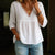 Casual seven-quarter-sleeved lace V-neck pullover multi-color women's top shirt m301442