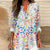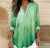 3D marble shading trendy V-neck shoulder shirt curved hem long sleeve m301292